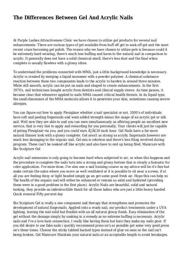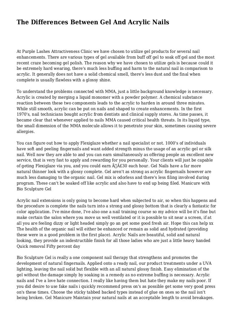 difference between acrylic nails and hard gel nails, the researchers say, would allow users to reduce their risk of permanent damage, and increase their productivity, to some extent.